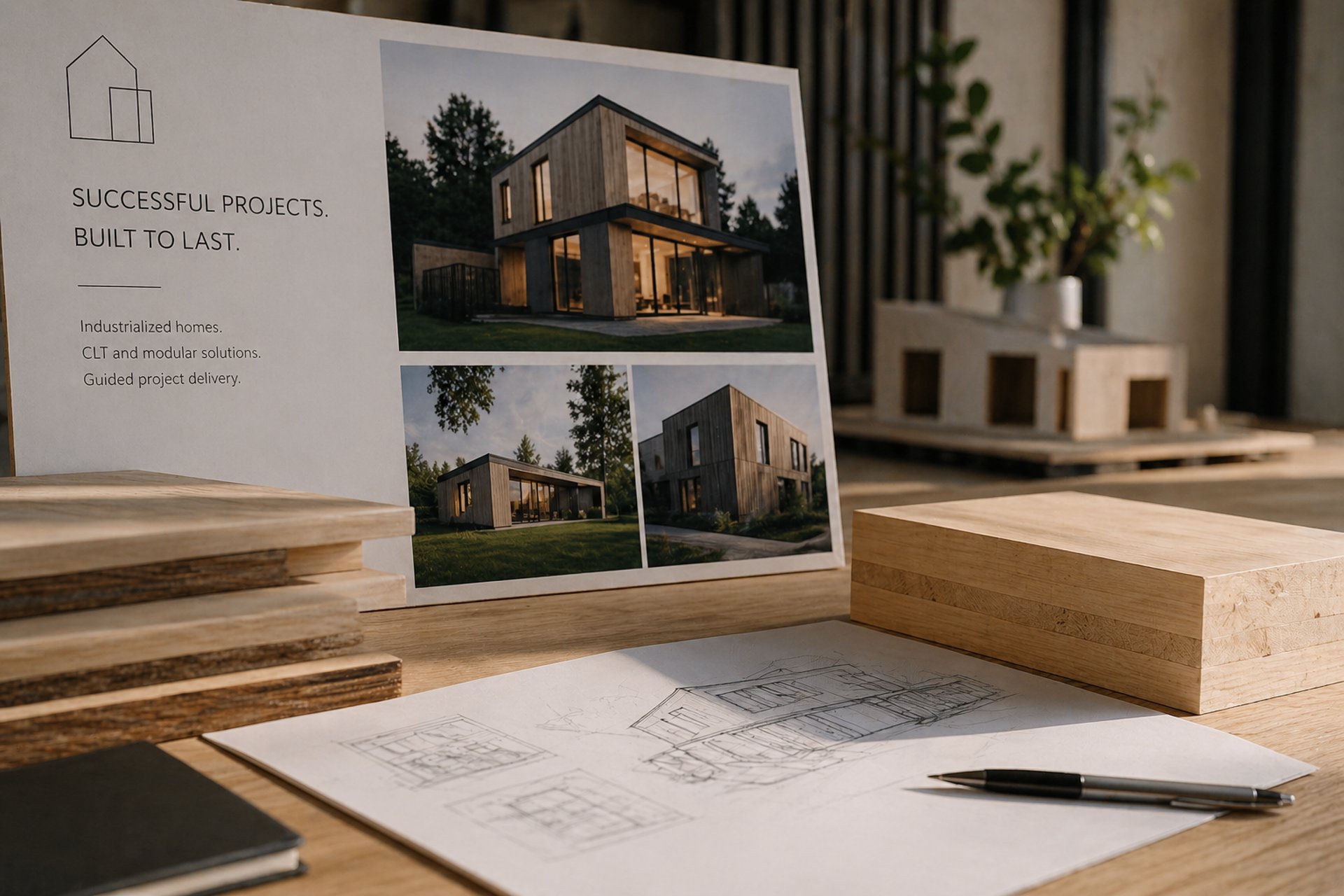 A modern company for industrialized homes, focused on CLT, modular solutions, and guided project delivery.